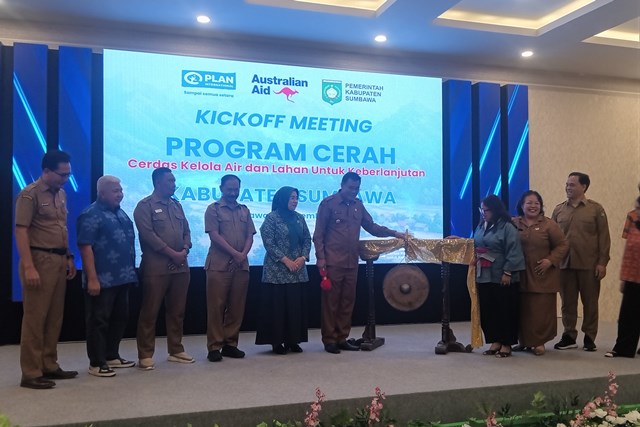 Pemerintah Kabupaten Sumbawa bersama Plan International Indonesia dengan dukungan Australian Aid menggelar Kickoff Meeting Program CERAH (Cerdas Kelola Air dan Lahan untuk Keberlanjutan), sebagai upaya bersama dalam menjaga kelestarian lingkungan sekaligus menjamin tumbuh kembang anak secara berkelanjutan. Kegiatan itu berlangsung di Hotel La Grande, Sumbawa Besar, Senin (15/12), yang diikuti oleh sejumlah pimpinan OPD Lingkup Pemda Sumbawa, Kepala Desa dari 7 kecamatan lokasi program Cerah, Penyandang Disabilitas, dan pihak terkait lainnya.